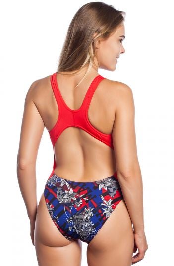 Uimapuku, jossa puoliksi avoin selkä ja leveät hihnat. Tarjoaa luotettavuutta ja mukavuutta käytössä. Korkealta leikattu reisi tarjoaa maksimaalisen liikkumisvapauden ja saa jalat näyttämään pidemmiltä. Valmistettu erittäin kestävästä klooria kestävästä kankaasta. Kehitetty säännölliseen harjoitteluun altaassa.