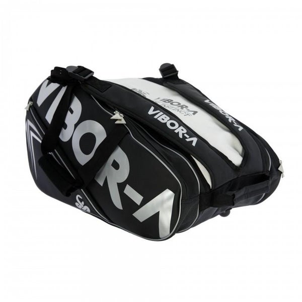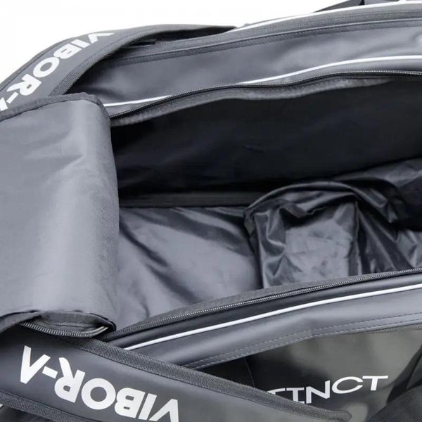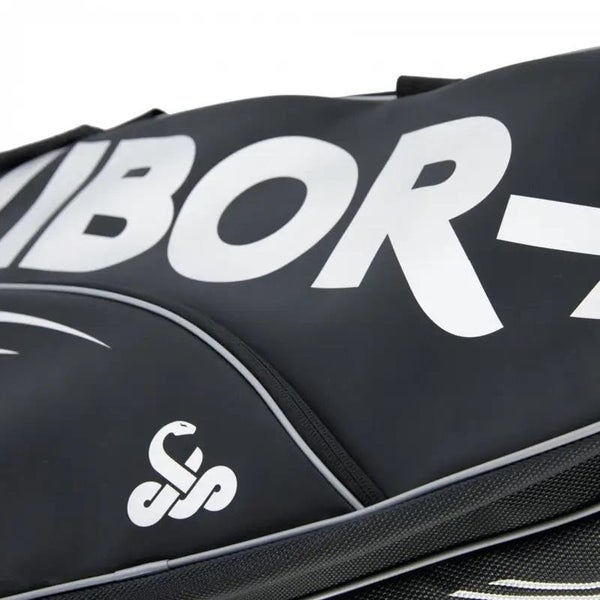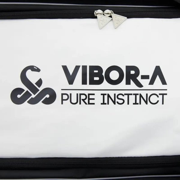 Vibor-a ja Pure Instinct-tekstit kyljissä ja päällä. Isot käärmelogot kyljessä ja pohjassa. Tämä on yksi markkinoiden käytännöllisimmistä ja upeimmista mailalaukuista!