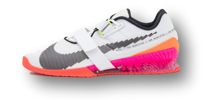 Voimaa ja tasapainoa tukemaan suunniteltu Nike Romaleos 4:ssä on tukeva välipohja ja leveä, litteä ulkopohja. Säädettävät hihnat jalkapöydässä tukevat jalkaa kovienkin harjoitusten aikana.