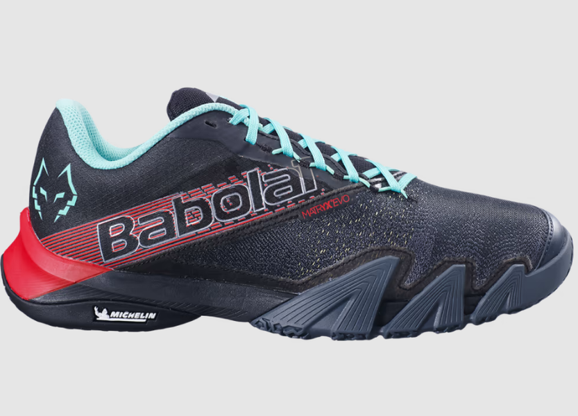 Babolatin ja Michelinin yhdistäessä osaamisensa syntyi ensimmäinen täysin padeliin suunniteltu pohja: erinoimainen jousto päkiäosan urien ansiosta, uusi ja dynaaminen hiekalle ja keinonurmelle sopiva pohjakuvio. Kriittisiltä osin paksumpi pohja parantaa kengän käyttöikää.